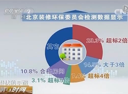 近日,央視財(cái)經(jīng)《第一時(shí)間》報(bào)道:北京裝修環(huán)保委員會(huì)檢測數(shù)據(jù)顯示,在接受調(diào)查的352間新裝修的房屋中,臥室甲醛含量超標(biāo)的有314間。其中,超標(biāo)2倍的臥室占調(diào)查總數(shù)的29.3%;超標(biāo)3倍以上的臥室占調(diào)查總數(shù)的25%;符合國家標(biāo)準(zhǔn)的房間,僅有38間。